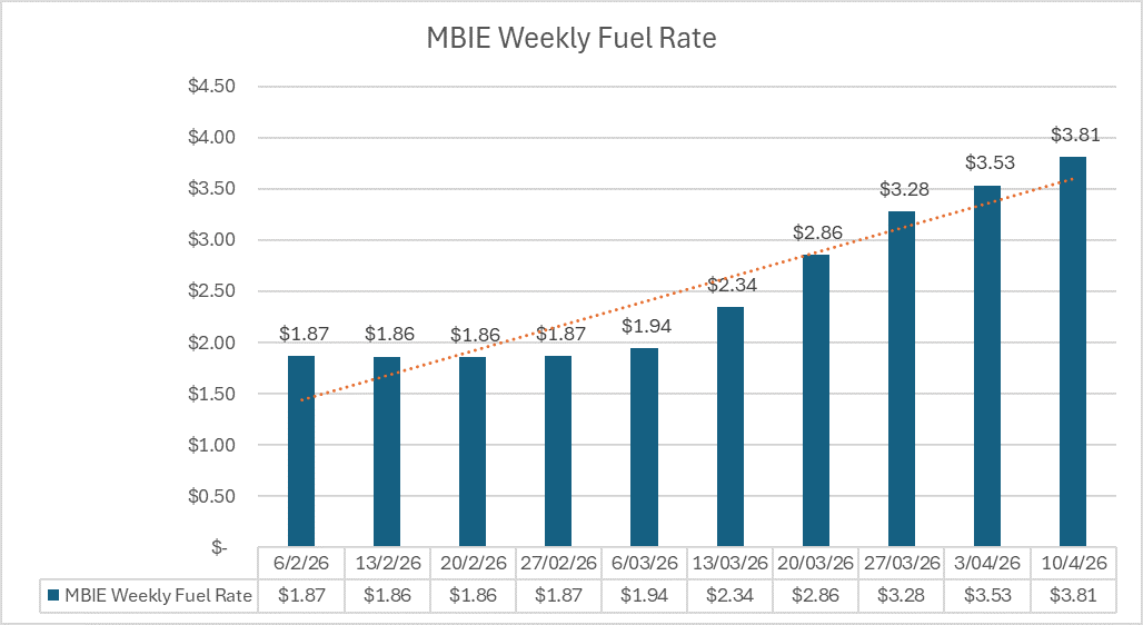 Our fuel delivery surcharge rate is directly linked to the weekly MBIE fuel monitoring table, ensuring consistency with publicly available, independently reported diesel price data. This approach ensures that as fuel prices change, increased costs are passed on fairly — to the extent that we have capped the fuel delivery surcharge currently.